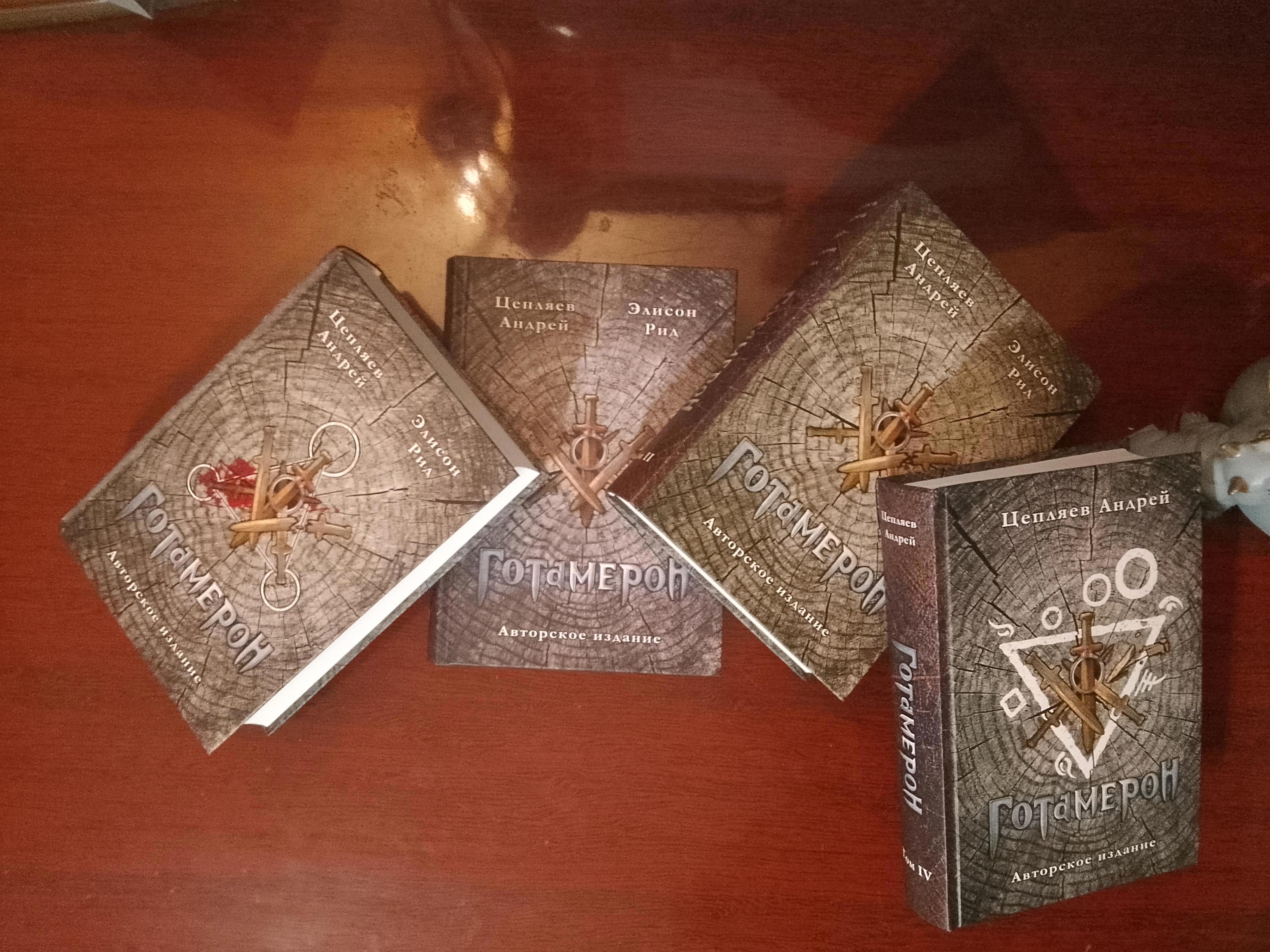 Первые два тома были напечатаны в один год (2019). Третий пришлось чуть подождать, а вот четвёртый появился аж спустя три года. Все вместе они названы «Трилогия знакомства». Ее автор создавал с некой загадочной персоной, публикующейся под псевдонимом - Элисон Рид, которая сейчас уже отошла от дел. Каждая книга из первой трилогии посвящена группам персонажей, переживающих удивительные приключения на острове Миркхолд, а также событиям за его пределами, которые связаны с некой Готамеланской войной, бушующей где-то далеко на материке. Собственно сама стилистика и жанр Готамерона выделяются из массы фэнтезийных книг. Каждая история больше состоит из локальных путешествий и мини-детективов, объединённых благодаря большому числу действующих лиц, которые то и дело пересекаются на просторах острова. По словам автора - это и является отличительной чертой книги. Нам предлагают аж шесть главных героев, живущих на острове и с десяток персонажей вокруг них, у которых есть свои друзья и т.д. Получается что-то вроде паутины, соединенной нитями, и за какую ни дерни, будут задеты остальные.