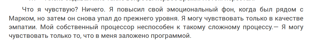 И во взаимодействии этих двоих видно, что проблемы Лин — это не «отсутствие человечности», а просто социальная дезадаптация. Марк ввёл (впихнул!) её в социум людей, а продолжилось дело в поселении, где она оказалась в итоге.