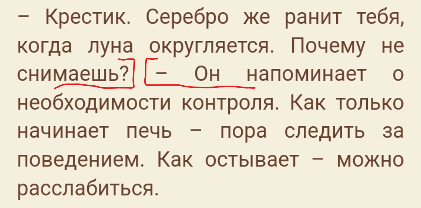 А ещё меня несколько удивляет количество прикосновений. Может, дело в том, что я сама не особо тактильный человек, загоняющийся по личному пространству и границам, но меня немного ошеломляло, как часто персонажи, даже не особо близкие, тут трогают друг друга: кладут голову на плечо, касаются лица, гладят по руке, обнимают и всё в этом духе. Возможно, дело просто в разном с автором мировосприятии.
