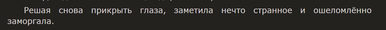 Начну с того, что наболело. Не знаю, на каких курсах этот рассадник маразма и из какой дыры это вылезло, но в последнее время я стала постоянно спотыкаться об очередную лингвистическую девиацию: видимо, мы почти отстали от слова "был" и перешли на местоимения. Так вот, местоимения в русском языке существуют не просто так и имена персонажам вы придумываете не просто так. Не нужно превращать прозу в драматургию, состоящую из плохих ремарок (копирование закрыто, но ничего, я упорная):
