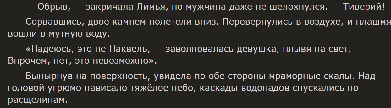 К третьей главе у нас неожиданно прорывается фокал другого персонажа. Не надо так делать - если у нас фокальная Лимья, то пусть она и рассказывает.