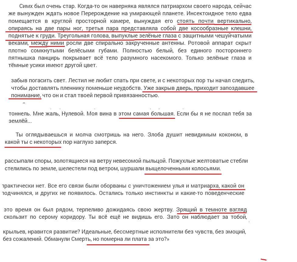 технически почти безупречный текст (1-2 опечатки на каждую часть, иногда и вовсе нет формальных ошибок,но есть ошибки стиля и согласования) Все озвученные в книге цели слиты и вообще непонятно для чего делалось все то что там делалось. что, старый симх не мог сам найти планету, на которой дерево посадить?!и при этом очень слабый, вторично-заимствованный сюжет про ученика-марионетку, спасителя человеков, без экшна и динамики. Трагизм неоправдан. примерно с пятой главы я понял что это книга...эм... требует добавления тегов "комедия положений" и "пародия". в конце - что это просто времясос. Она реально становится нелепой. словно написана на каком-то марафоне по случайным темам: "а сегодня на ГГ нападает хищник... придумай главу"... "а сегодня ГГ идет на прогулку"... "а сегодня мы придумаем легенду про странный топор"... и примерно на 5-й же главе начинается хоть какой-то движ вне канвы прогрессорства и появляются условные "злодеи второго крыла" и примерно на ней же мне надоело фиксировать косяки и ляпы. И я просто дожевал этот кактус и поставил оценки.