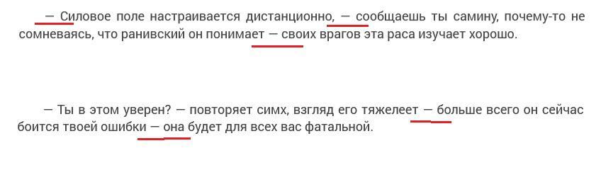 Есть (и довольно часто) небрежности в оформлении диалогов. вот например, попробуйте определить - третье тире в первой фразе. оно что нам показывает? разрыв прямой речи или объяснение ремарки? если это продолженная прямая речь - она говорит про ранивов или про расу пленника? или может это ГГ намекает пленнику, что не считает себя ранивом?