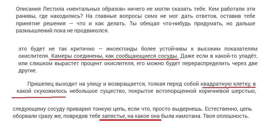6. Стиль и язык - 6. текст "двоит" - высокая внешняя грамотность при низкой конструктивной. Это как хорошо отполированная, но криво сваренная рама велосипеда. Хорошо сшитое, но криво раскроенное платье из дорогого материала. По сути испорченная дорогая вещь, которую не удается исправить позолотой последнего этапа. Можно только распороть и сшить с исправлением кроя. Или прикрыть палантином... Думаю, относительно высокая грамотность текста это все же работа наемного корректора и редактора,так как видно, что проблемы языка возникли еще на уровне базового авторского построения текста и полировала другая рука, причем убрать проблемы полностью не удалось в силу конструктивной невозможности.
