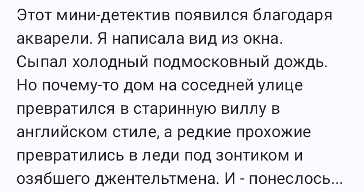 И таких "живых" описаний в книге очень много. Это помогает читателю "увидеть" эту историю глазами автора. Возможно, кому-то объём книги покажется очень маленьким. Лично мне хватило. Я с бОльшим удовольствием прочитаю сборник коротких детективных историй, нежели один, не в меру раздутый роман. Ну тут уж, как говорится, на вкус и цвет.