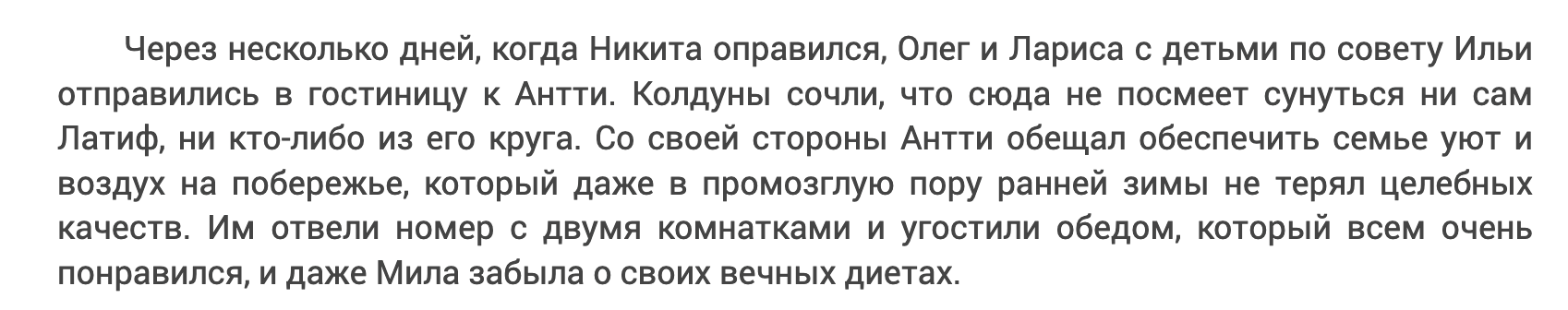 Из того, что царапнуло: пропущенные запятые в сложносочинённых предложениях, порой — неверный подбор слов и временами «неживые» реплики в диалогах: слишком высокопарные или энциклопедические.