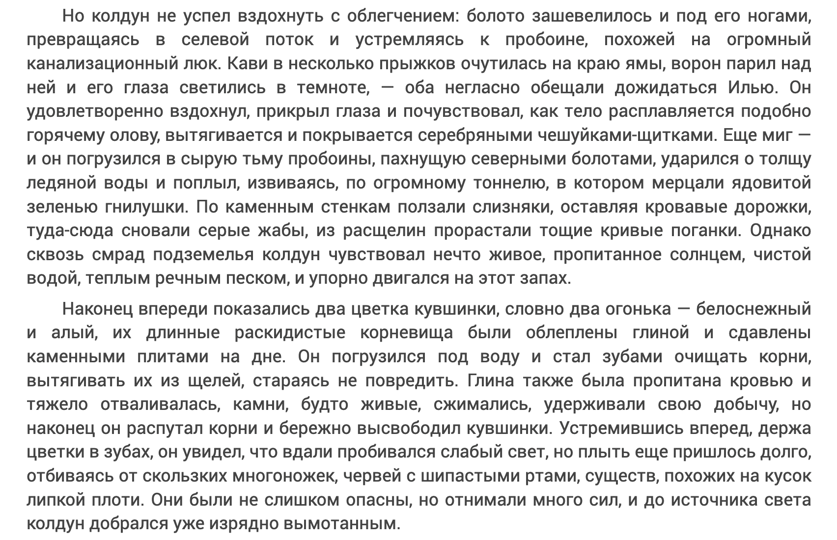 Если подытожить, то я бы назвала самой сильной стороной книги фольклорную составляющую. Я почти не знакома с кельтской, ближневосточной и финской мифологией, поэтому не могу оценить, что позаимствовано из древних сказаний, а что добавлено автором от себя, но читать это было занятно.