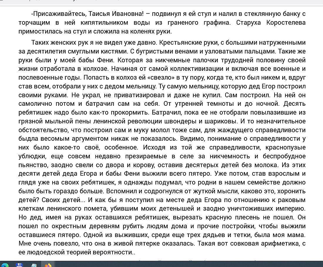 Но задело меня по-настоящему не проходной попаданческий фактор. Жесткое отношение к прошлому, к становлению этого несуразного строя с кровопийцами во главе, вот что тронуло мою читательскую душу. Как вспомню сколькими трупами прекрасных людей, могущими стать гордостью нации, усеяно «вся власть народу», так сердце щемит.