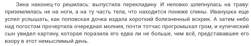 Ну всё, довольно, пора выгнать фольклориста и включить режим читателя. А как читателя меня в книге кое-что печалит. Но это мои печали: я ими поделюсь, но критиковать не стану, мало ли, может, это для кого-то наоборот самое вкусное.