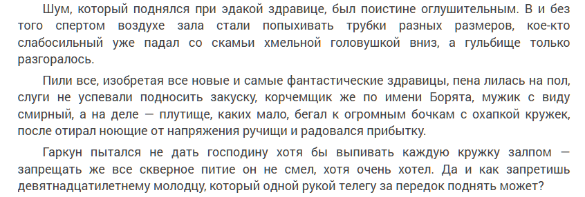 Текст, несмотря на любовь автора к деталям, не выглядит перегруженным. Даже в моменты описаний бытовых сцен динамика не сильно проседает. Орфография, пунктуация — на достойном уровне. Очепяток не обнаружено.