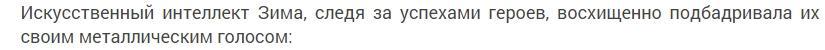 Но тут как-то прямо уж совсем странно. "Зима" это искусственный интеллект, женского рода. Почему имя стоит в именительном падеже, будто оно иностранное и не склоняется? Это не акроним вида "З.И.М.А". И нет у автора такого правила, что он все названия глав пишет прописными буквами.