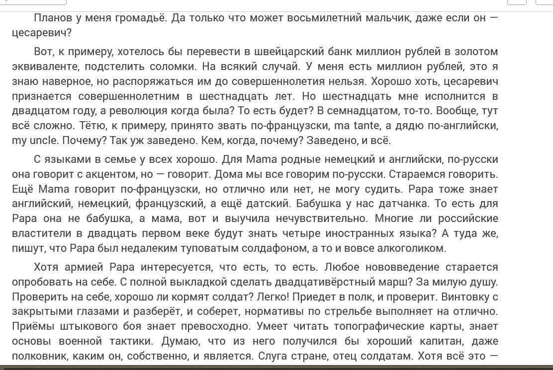 Но случилось чудо: мальчик поправился. И всё бы хорошо, одно только нехорошо: душа цесаревича покинула этот мир, отбыв в неведомое. Её место заняла душа юноши, погибшего во время «дня ракет» в августе 2026 года.
