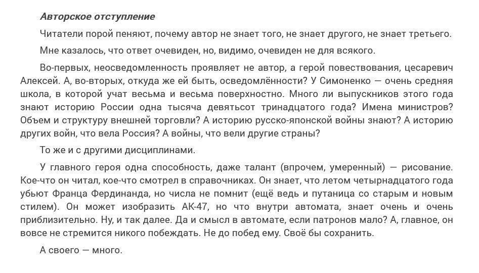 Ну а некоторые несообразности текста объясняет сам автор в своем отступлении: