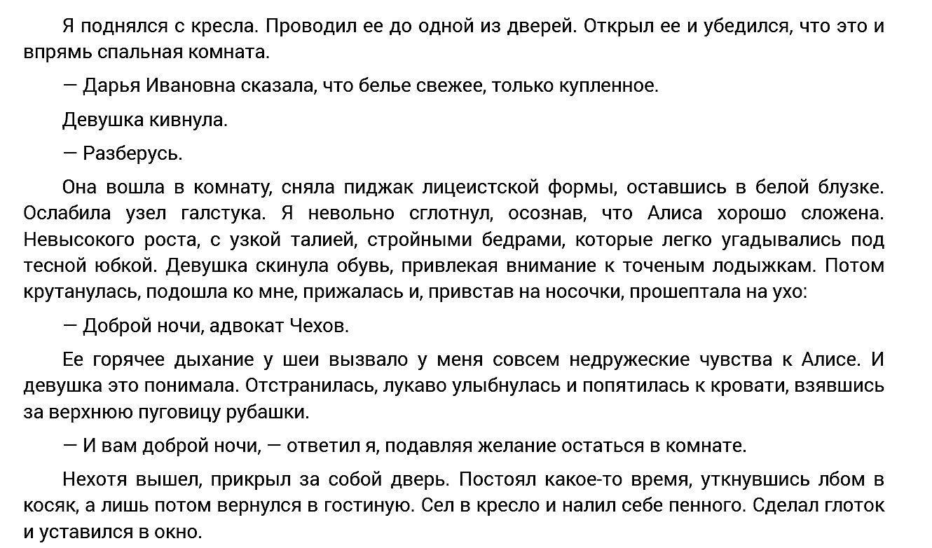 Вот, к примеру, я сейчас читаю про адвоката Чехова невнятных коммерческих авторов - Гоблин, Каин. Так вроде все интересно, мир царского правления хорошо прописан, уйма приключений и стилистика грамотная. Но вот того подъема чувств не испытываю, как при чтение выдумок Щепетнева… эмоции как-то сглажены и события из памяти стираются после нескольких дней. Как-то двумерно пишут ребята, избравшие бульварную литературу предметом постоянного заработка.