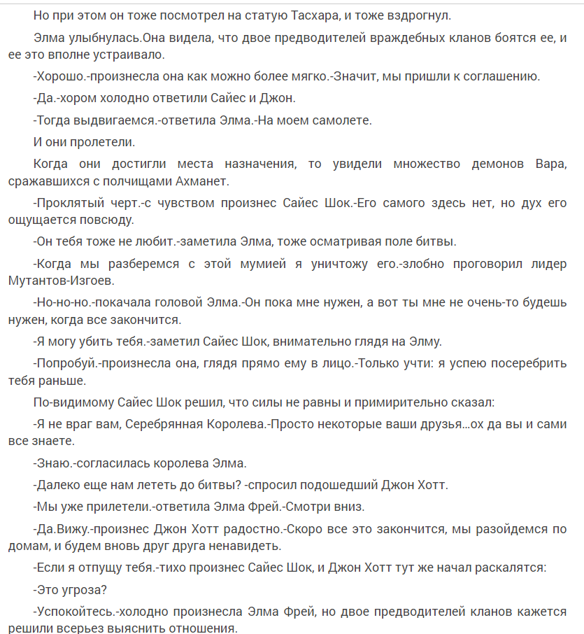 Далее я уже читал без особых проблем, не вникая в происходящее и не пытаясь находить логику в происходящем, как и пропуская все сюжетные дыры, при этом, совершенно не теряя в происходящем в книге.