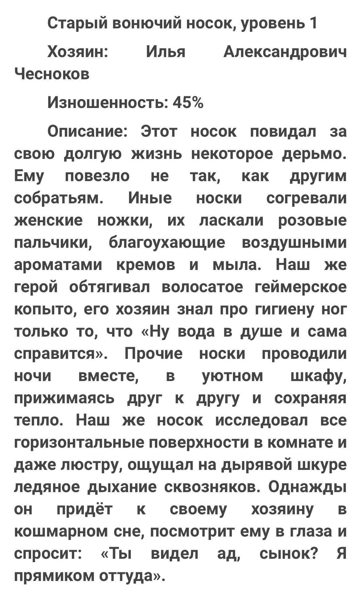 ...данную книгу заприметил оч давно, ещё в первые дни своего пребывания на АТ. Но тогда меня почему-то оттолкнул факт того что повествование идет от третьего лица. Хз почему так. Не спрашивайте. Нынче же я читаю три впроцессных истории от третьего лица, две из которых РеалРПГ, как и данная книга в частности. И вообще чет как то на этот жанр подсел...