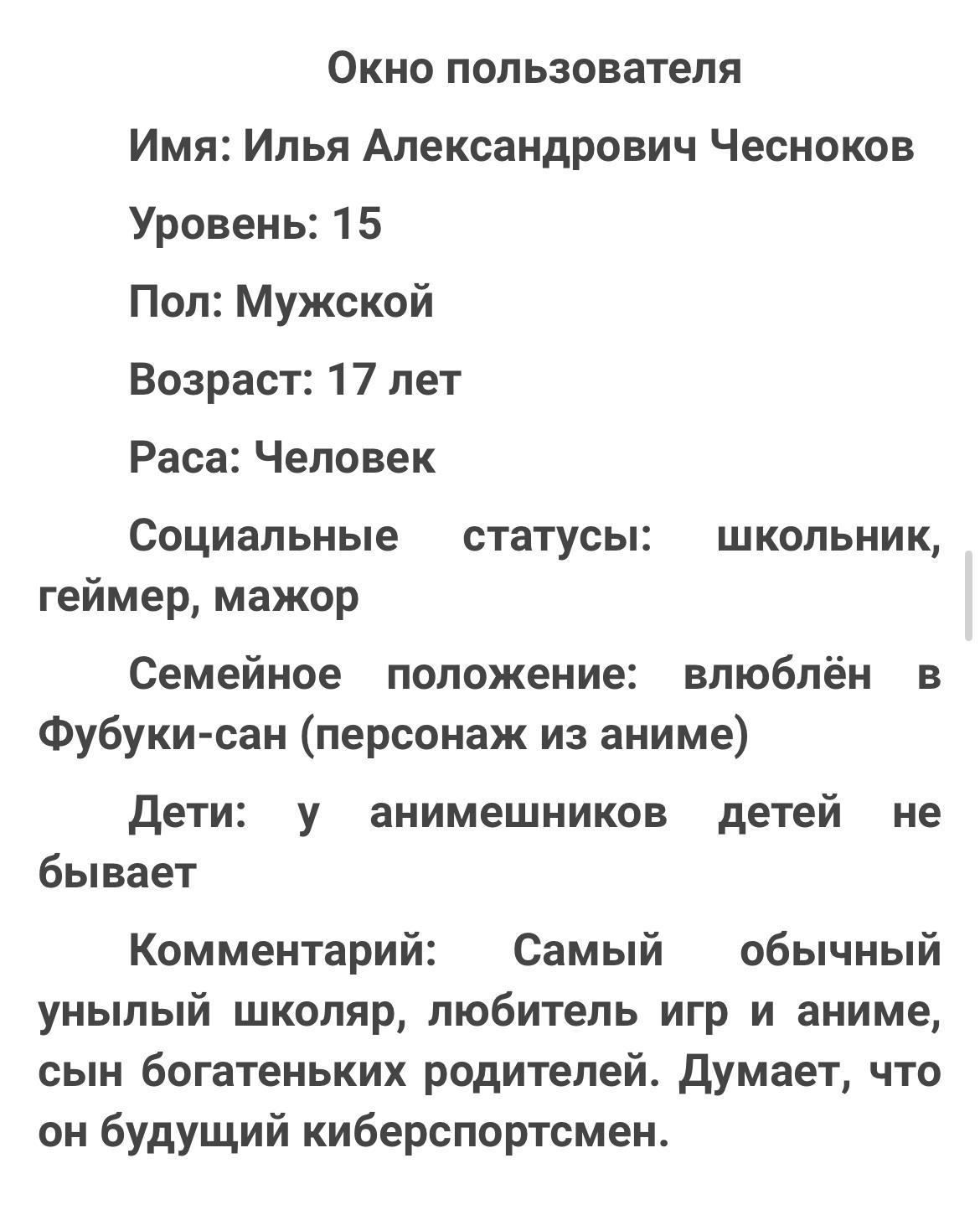 Интересен ГГ, в роли которого выступает 17-летний геймер-задрот-анимешюбитель-хиккан. Возможно (скорее всего) из-за подобного образа жизни его проявление силы и приняло вид Системы с квестами. А также с виртуальной помощницей в голове, с возможностью напрямую из мозга подключаться к интернету, скачивать оттуда программы, и даже случайно поставить себе в голову А…