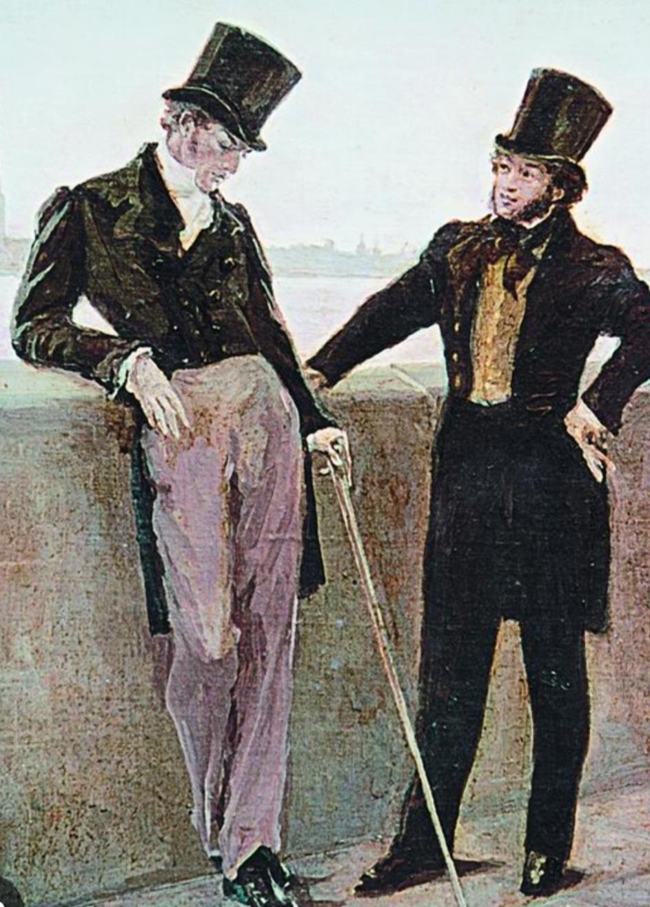 Начнем, конечно, с А. С. Пушкина. " Евгений Онегин" был опубликован 2 апреля 1833 года. Роман написан «онегинской» строфой: каждая такая строфа состоит из 14 строк четырехстопного ямба. Ритмически и интонационно она часто распадается на 3 четверостишия (с перекрёстной, парной и охватной рифмовкой) и заключительное двустишие. Герой пушкинского романа - молодой дворянин первой половины 19 века.