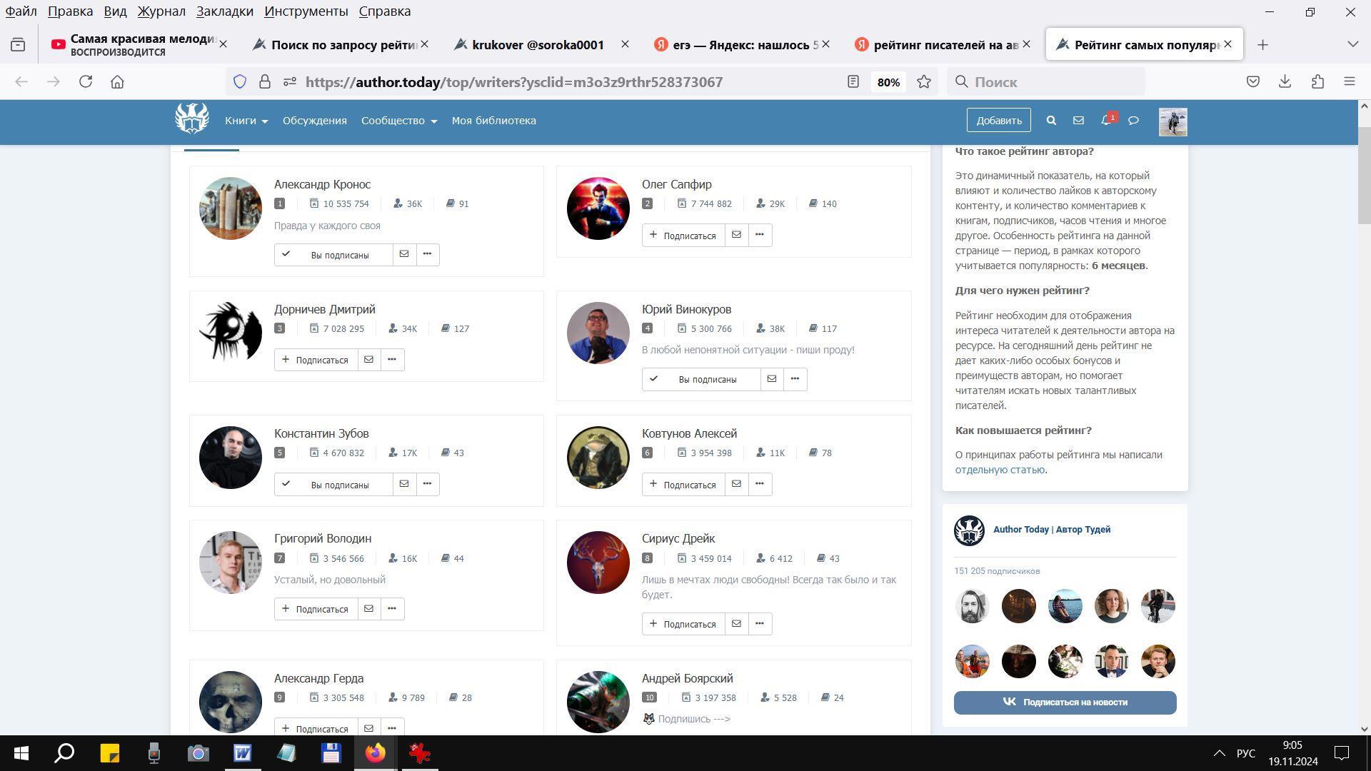 Если раньше в школах учили Читать и Заучивать, то нынче во времена всеобщего ЕГЭ эта необходимость отпала. Наше любопытство питают коротенькие видиосюжеты из «Телеграмм», 2Тик-тока», «Твитера»… Которые, кстати, как и быстрая пища, усваиваются без участия мозга! Вот на фото наши «миллионщики». Их труд высоко оценен и я тоже пытался читать их произведения. Прекрасно отвлекает, но в памяти не остается буквально ничего.