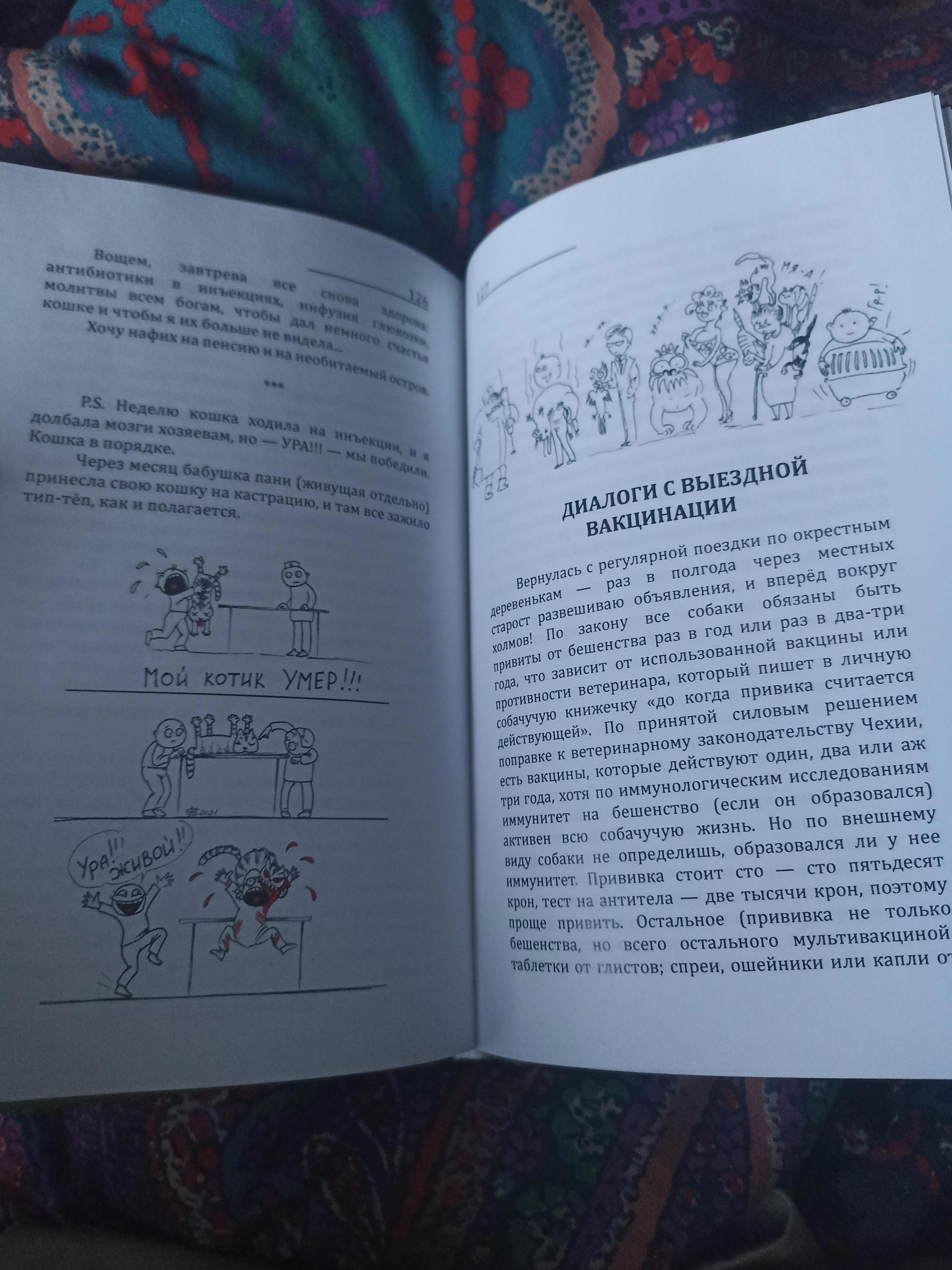 Теперь о самой книге. Внутри небольшие рассказы о буднях врача ветеринара. Первый же рассказ вызывает сперва дикий ор, который выше гор. А потом, потом недоумение, такие правда бывают? Увы, бывают и я тоже таких знаю, правда к моему счастью не с профессиональной стороны. Мне проще, могу послать матом.