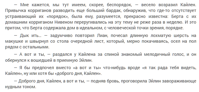 Если сюжет в целом оставляет приятные впечатления, а сама история способна завлечь, то вот с динамикой повествования не все гладко. Она сама по себе неспешная и вялотекущая. Экшен-сцен здесь очень мало, но не это главная проблема. Проблема в том, что процентов шестьдесят книги дано на откуп банальному пересказу событий. И вместе с низкой динамикой это выглядит, мягко скажем, не айс.