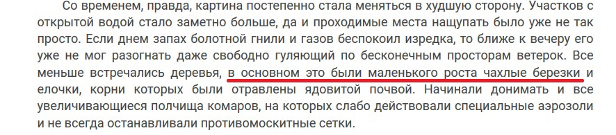 На самом деле, тут можно не только чахлые березки маленького роста можно подчеркнуть было. "Картина стала меняться в худшую сторону" - тоже неважно звучит. "Было уже не так просто", "были маленького роста", "были отравлены" - многовато былей на один абзац.