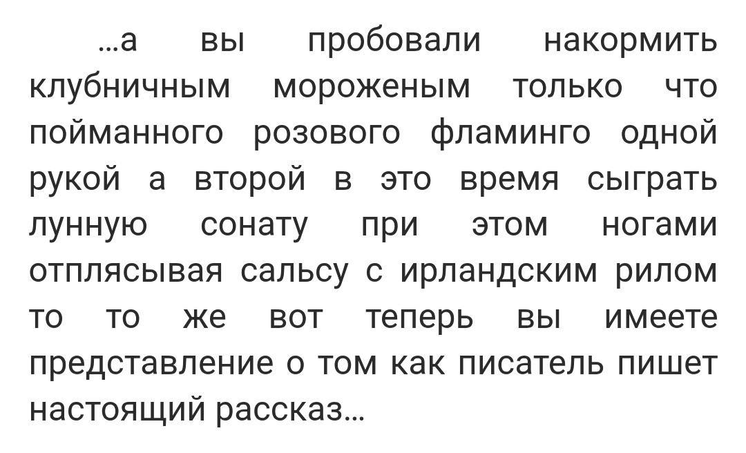 Начал читать... И, как кувалдой, меня вбило в экстатический ступор. Словно солнце вышло в дождливый день. Или даже после долгой полярной ночи. Я читал и не мог остановиться. Владение словом восхитило, стиль очаровал, захотелось всем рассказать о найденном бриллианте — не алмазе, а уже ограненном, сверкающем, невероятном чуде. В уме начала складываться концепция настолько похвальной рецензии, какой в моей практике (а, может, и вообще в мире) по сей день не существовало. Восторгу не было предела. Я поймал себя на мысли, что с удовольствием тоже писал бы так, если б умел. Но не дано.