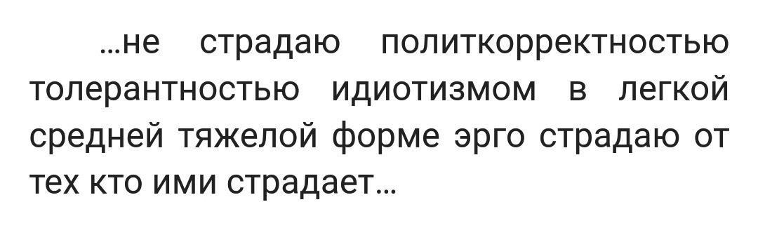 Толерантность? Свят-свят-свят. По-русски это терпимость, а толерантный человек по-русски — терпила. Не дай Бог. А вот политкорректность и идиотизм — это про меня. Придется, уважаемый автор, немного потерпеть, вы сами выложили текст на получение рецензии в марафоне «Читатель — Автор», где я про вас узнал.