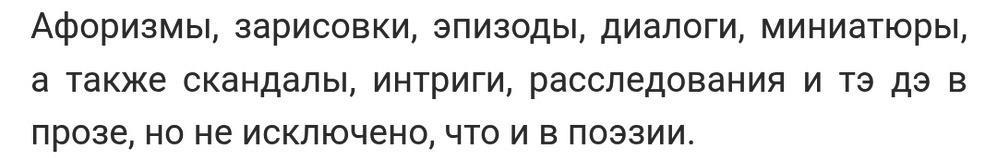 Во-о-от. А помимо изменения формы очень сильно разочаровало содержание. Сюжеты… Сюжеты?! Забудьте это слово. Творчество не должно ходить на поводке у разума (я это понял так, читая книгу автора, потому что) автор сам написал, как он творит: