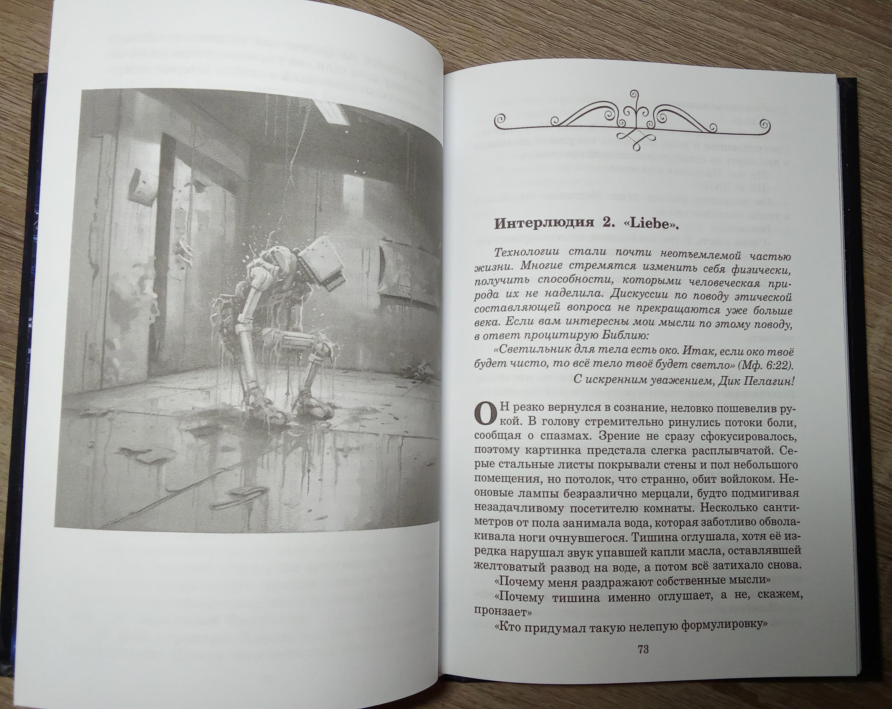 Идей в книге невероятное количество, поэтому прочитать её сразу от корки до корки трудно. Зато можно открывать на произвольном месте и каждый раз удивляться фантазии автора. Роман похож на острый сыр, его пробуешь, когда есть настроение. Прекрасное оформление тома и плотная белая бумага добавляют удовольствия от чтения.