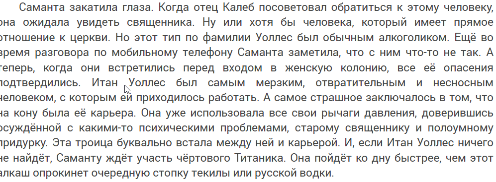 Но это единственное, что мне бросилось в глаза. Может быть, я так потом увлеклась, что не замечала? Хотя вряд ли, обычно сбой авторского текста выбивает из настроя.