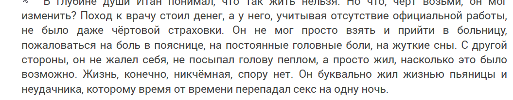 Автор описывает ужасную жизнь детектива, если можно так назвать героя: