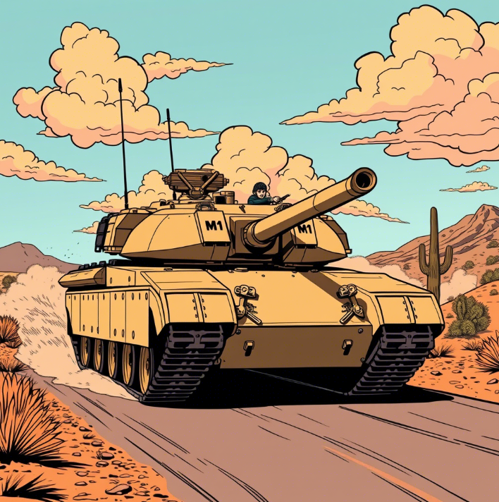И тут, как по волшебству, из облака пыли, поднятого танком, вынырнул "Хаммер". Он резко затормозил рядом, подняв еще больше пыли. Из него вышел солдат – с лицом, как у тимлида после масштабного сбоя.