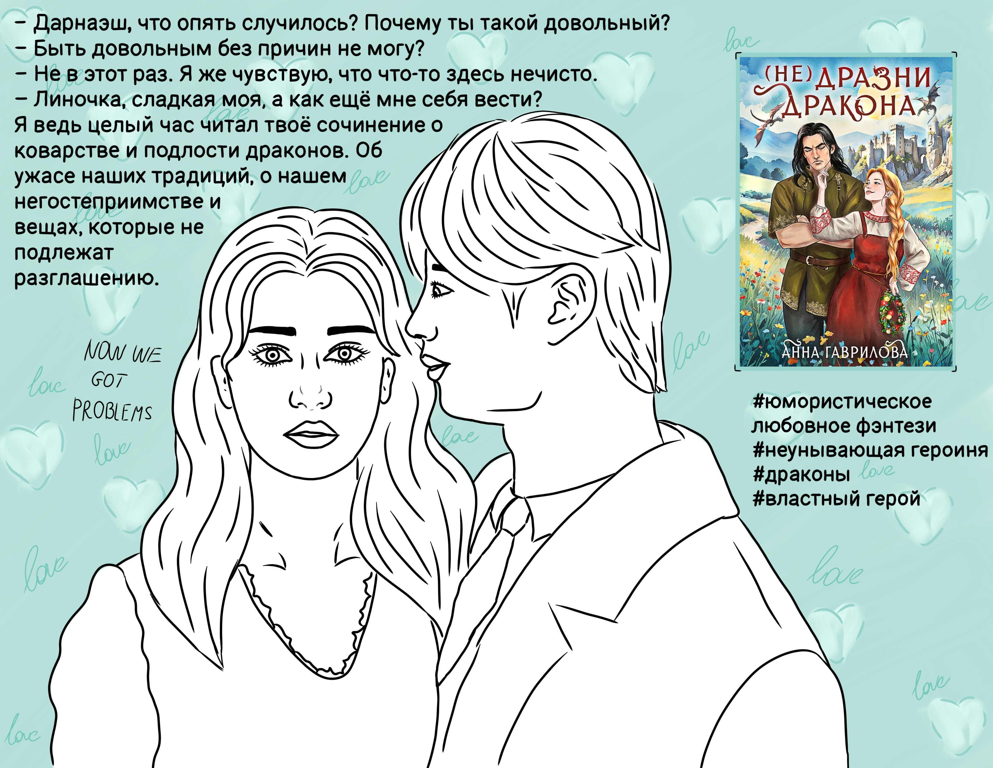 Верите ли Вы в необычные совпадения? Когда только подумаешь и озвучишь в пространство какие-то слова другим, как они в ближайшее время воплощаются в жизнь самым странным и неожиданным образом. Честно, у меня были такие моменты, после которых я долго была в шоке. Но и у Лины, главной героини "(Не) дразни дракона", тоже они явно случались. Ведь именно с момента разговора с деревенскими девушками, посвящённого похищению драконами невинных дев, и начинается данная история. Когда в самый разгар беседы похищают ту, которая и верить не хотела в эти сказки, в итоге оказавшиеся реальностью.