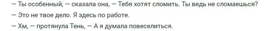 В какой-то момент у меня возникло ощущение авторской игры в «я докажу, что писать можно и так, при этом красиво». Получилось ли – не скажу, пусть читатели решат сами. То, что получилось странно – однозначно.