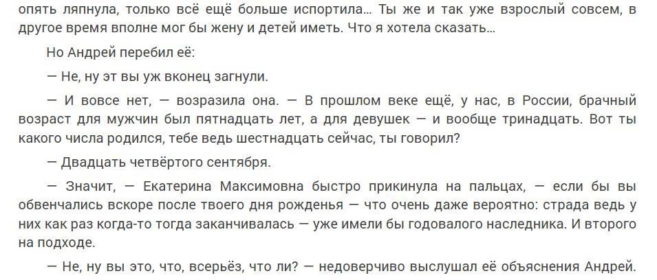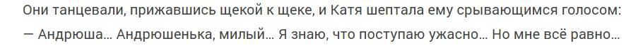 Она откровенно унижается перед учеником: плачет при нём после ночи любви, ибо думает, что на этом всё закончится. В общем, всё достаточно печально даже с учётом трудной жизни Катерины Максимовны. В её «большую, но чистую» любовь не верится: