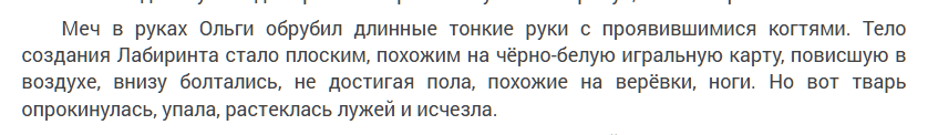 Поговорим о динамике. Возможно, многие заметят, что книга достаточно объемна. И я не стану лукавить, скажу как есть — местами роман выглядит затянутым. Если вы впервые знакомитесь с циклом «Проводники Лабиринта», то для вас сей аспект не сильно бросится в глаза, ибо по мере развития сюжета автор будет плавно погружать вас в лор. Но если «Чудовища и красавица» не первое произведение серии, с которым вы знакомитесь, а уж тем более если вы ее фанат, то немалая доля информации о сеттинге станет для вас повтором. И от этого никуда не деться. С другой стороны сие позволяет роману быть полностью самодостаточным произведением внутри цикла, как и многие другие его представители.