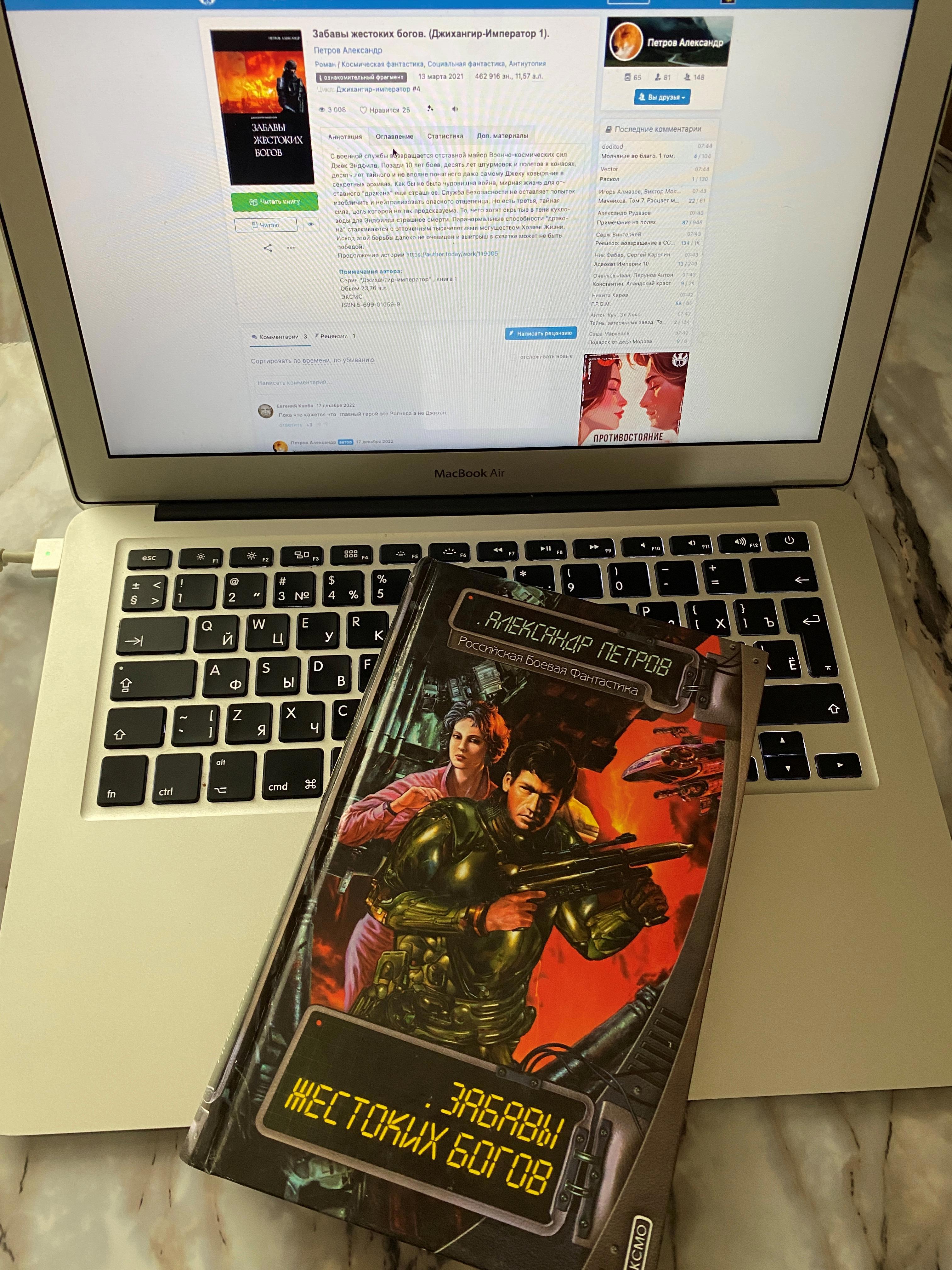 Речь идет о «Забавах жестоких богов» Александра Петрова. Книга, написанная на стыке веков, мне так зашла, что я даже нашла и купила ее бумажное издание.