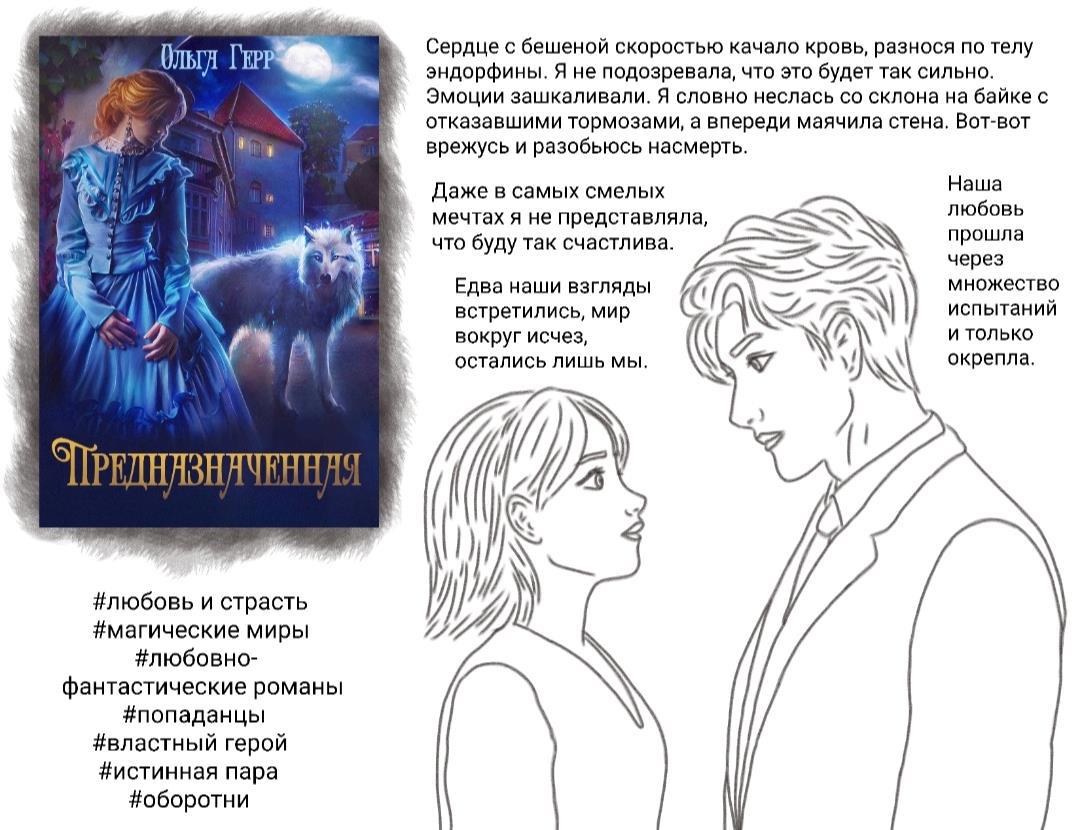 Хотела бы отметить такой моментик. В поисках качественного изображения обложки я пошла к автору в группу и случайно обнаружила один факт. Несколько я поняла, эта книга является единственной у писательницы, где фигурирует в главных ролях раса оборотней. Но при этом, на мой взгляд, Ольга Герр достаточно умело, необычно и красиво создала свою вселенную и героев, которые обладают такой незаурядной предысторией и настоящим, правилами "игры". Ведь оборотни становятся заложниками ограничений, которые касаются самой их сути. Причины? Немножечко банальны и логичны, при этом вызваны страхом. А страх не всегда хороший советчик. Затрагивает проблема всех: кто-то идёт по одному пути, а кто-то выбирает что-то другое для себя, идя наперекор первым, но все в итоге оказываются хороши. Естественно, в противоположном смысле. Однако будет в книге ещё такое общеизвестное понятие, как "истинность", природа и действие которой также имеют немножко свои интерпретации. А с появлением попаданки из другого мира так вообще многое становится неожиданным и не таким.