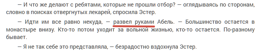 Единственное, что бросилось в глаза, это слишком часто повторяющееся одно и то же действие среди персонажей. Все подряд то и дело разводят руками. Даже те, у кого рука всего одна… А девушки вдобавок еще смущаются да краснеют. Тоже все.
