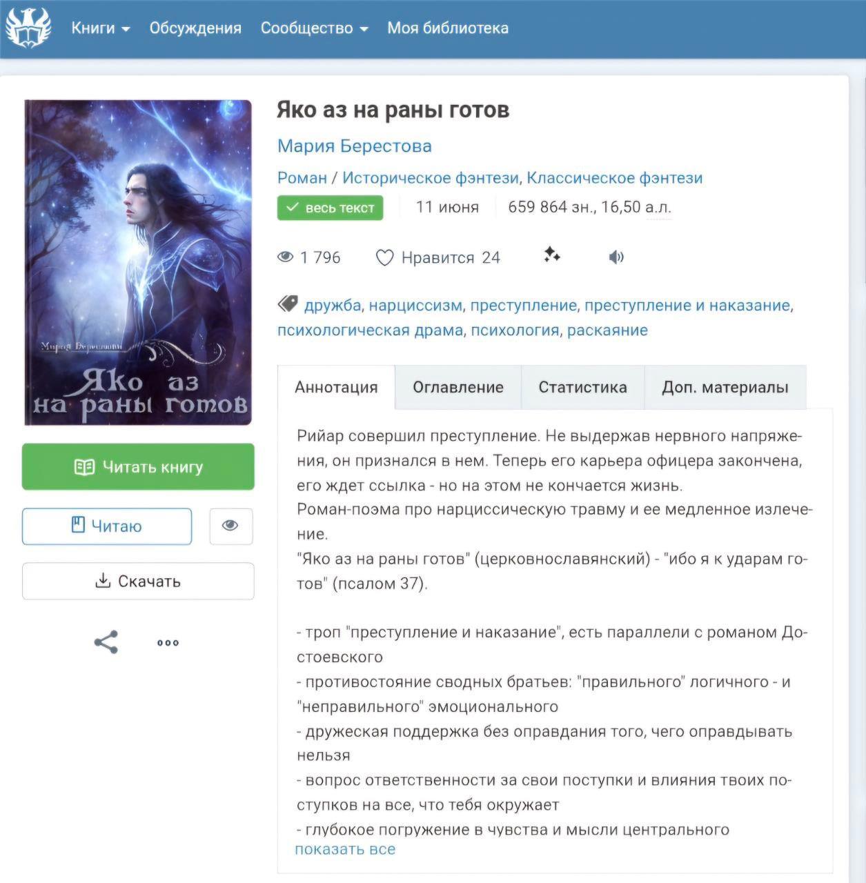 Именно с этой цитаты из 6 главы 1 части хотелось бы начать разбор произведения "Яко аз на раны готов" (в переводе с церковнославянского - "ибо я к ударам готов") автора Марии Берестовой.