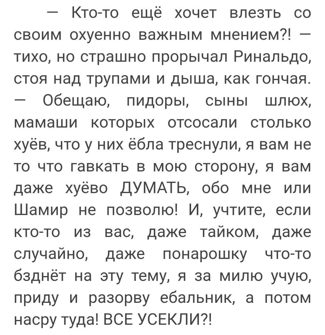 - страданий и рефлексий по Шамир у Ринальдо могло быть и побольше, а то что это, сначала "люблю-немогу", а потом сразу "ууу, девица легкого поведения"! Там должно быть как минимум "как ты могла, коварная змея, я ж тебя любил, а ты!";
