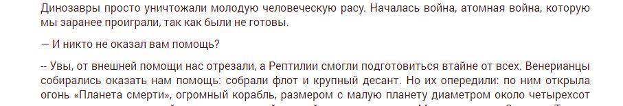 Подумалось (хотя трудно думать, когда включено РенТВ): а если сдаться роботам на необитаемом Марсе – кто потом будет кормить и снабжать кислородом? Но русские не сдаются, это уже стало международным слоганом, и наши герои ответно схватились за винтовки и гранатометы. Погибнуть с честью, увы, не получилось, внезапно из кустов… стоп, не было там никаких кустов. В общем, к месту всепланетной бойни прилетели инопланетяне-гуманоиды (в отличие от рептилий, предков и союзников англосаксов, они в космосе сражаются за ариев, к которым относятся русские (пардон за спойлер, больше не буду)) и побили супостата.