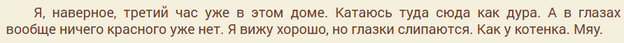 (Чем больше уменьшительно-ласкательных, тем я милее... Но эффект четырехмерного увеличения мне понравился. Такие вещи и добавляют истории того репитативного безумия, которое, как мне кажется, ты и хотел создать осознанно или нет)