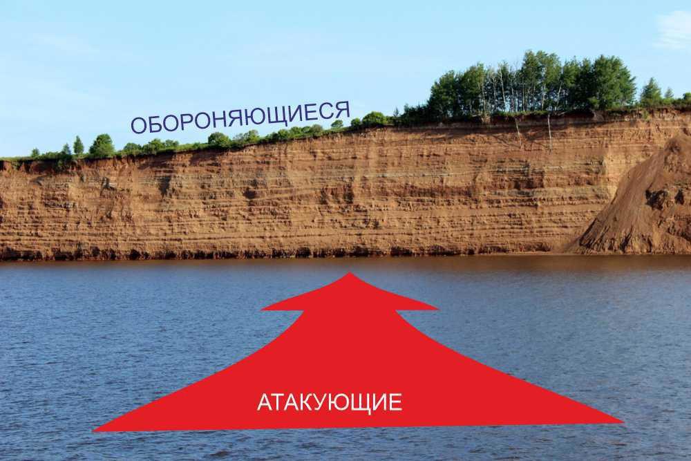 А теперь мы перенесемся сразу к 9-ой главе, которая полностью посвящена очередному эпическому сражению. Что мы имеем? Два войска, разделенные рекой. Войска Рондера (назовем их «наши»), меньшие по численности, укрепились на одном берегу, где построили укрепления. Войска Трэнии (назовем их «врагом»), имея численный перевес, растянулись вдоль другого. И враг, не придумав ничего лучшего, с помощью плотов начал переплаву на другой берег, подставляя свои войска под ливень стрел. Уточняю, «наши» находятся на возвышенности, берег у «наших» крутой, отвесный.