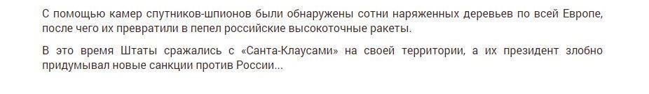 С общим настроем совершенно не вяжется политическая составляющая, зачем-то вплетенная в описанный феерический карнавал мирового беспредела. Вот здесь автор безусловно хочет показать безжалостное могущество России: