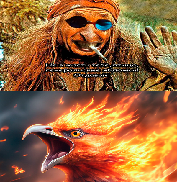 Кстати, да простят небеса мне эту шутку, но я сделал мем про Ягу и Жар-Птицу)))))
