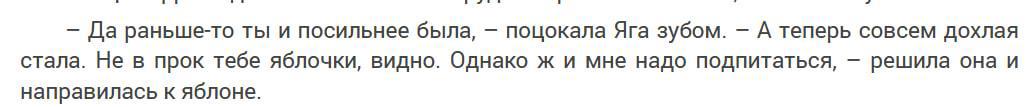 В основном, Баба-Яга - это прям мой любимый персонаж в книге. Колоритный говорок, интересные речевые обороты, ортодоксальные выражения, да и в целом персонаж кипит энергией, хоть и бабка по факту. Боевая бабка, прошу заметить.