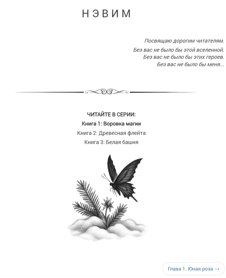 Рисунки, разделители, выверенные абзацы, картиночка после каждой главы, совсем как в бумажной книге - в наш век небрежности в сетевой литературе такой подход вызывает уважение.