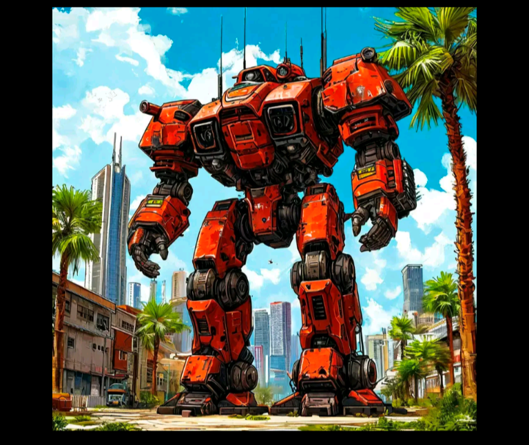 Дальше у нас иллюстрация первоначальной инкарнации ГГ - римского гладиатора. Я не буду придираться к тому, что ни арена на картинке, ни снаряжение ни разу не достоверны, в конце концов, это я такой задротище, обращающий внимание на историю, с чисто логической стороны - всё в порядке. 2.5/4 - счёт улучшается! Но не спешите радоваться. Дальше у нас иллюстрация местного мехи: